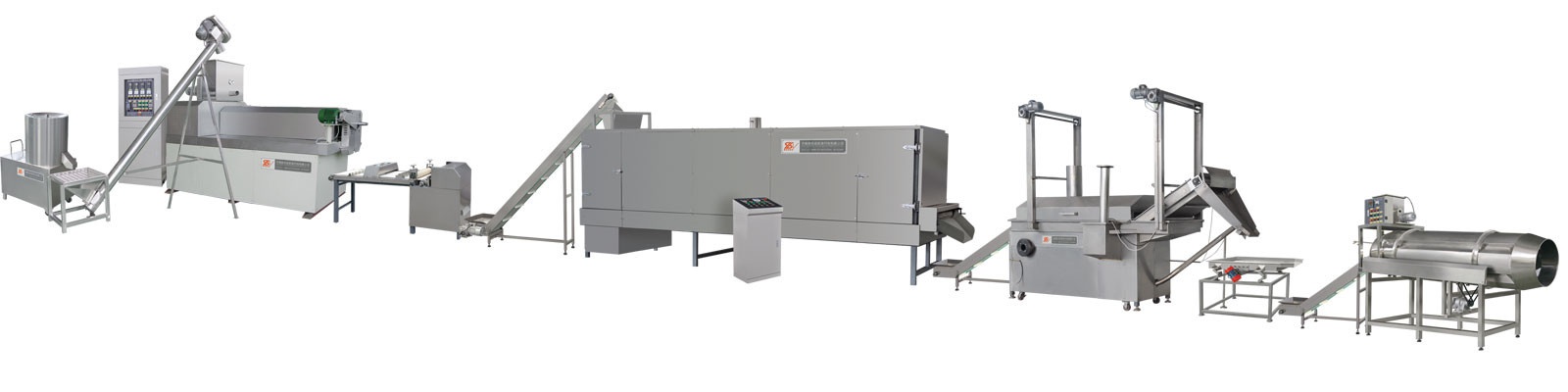 單螺桿油炸食品生產(chǎn)線是以面粉、玉米淀粉、馬鈴薯淀粉等為原料,經(jīng)過擠壓、熟化、成形、干燥、油炸、膨化的一種小食品。經(jīng)過不同的模具可以生產(chǎn)出貝殼、螺旋、方管、圓管、藕片、刺螺、肥腸等花樣新穎、形狀獨特的產(chǎn)品;再經(jīng)過油炸膨化后,即成為香脆可口,味道鮮美的食品。是目前市場上消費者比較喜愛的一種休閑食品。該生產(chǎn)線設(shè)計合理,自動化程度高,參數(shù)控制精確。